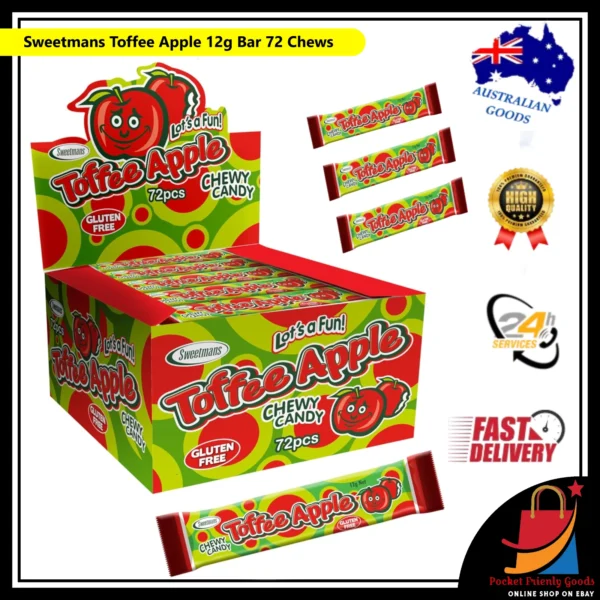 - Irresistibly Sweet: Indulge in the delightful taste of Sweetmans Toffee Apple bars, each offering a burst of sweet apple flavor in every chew